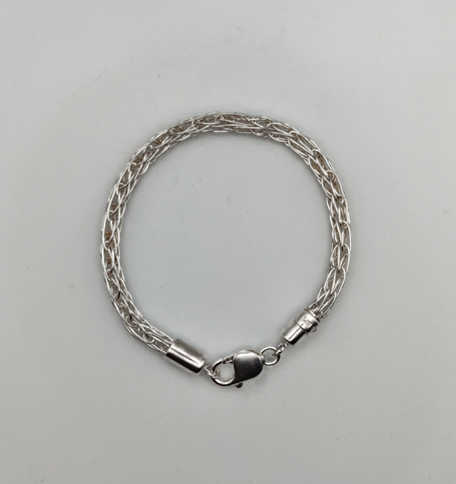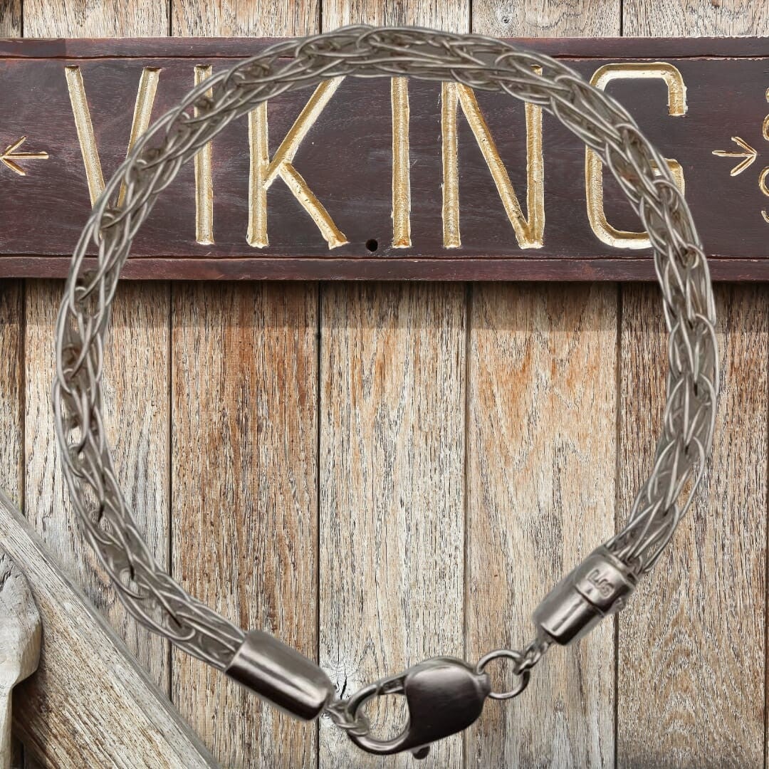 Viikinkityylinen rannekoru punottu käsinvedetystä 925 hopealangasta. Leveys/Pituus 5mm/21cm.